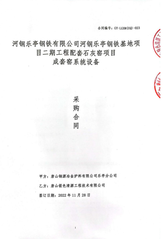河鋼樂亭鋼鐵有限公司河鋼樂亭鋼鐵基地項目二期工程配套石灰窯項目成套窯系統(tǒng)設備采購合同