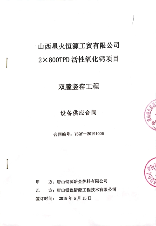 山西星火恒源工貿(mào)有限公司2×800t/d煤粉燃料雙膛豎窯工程,工程設(shè)計(jì)、關(guān)鍵設(shè)備供貨、自動(dòng)化控制系統(tǒng)供貨、鋼結(jié)構(gòu)制安、電氣安裝、設(shè)備安裝、窯爐點(diǎn)火調(diào)試等。