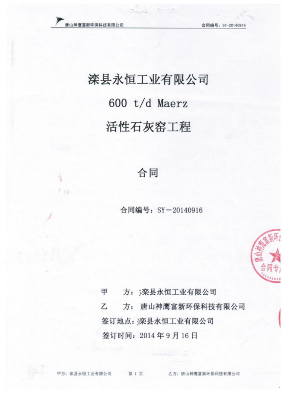 唐山永恒工業(yè)有限公司1x600t/d煤粉燃料雙膛豎窯工程設(shè)計、關(guān)鍵設(shè)備供貨、自動化控制系統(tǒng)供貨、電氣安裝以及窯爐安裝指導等